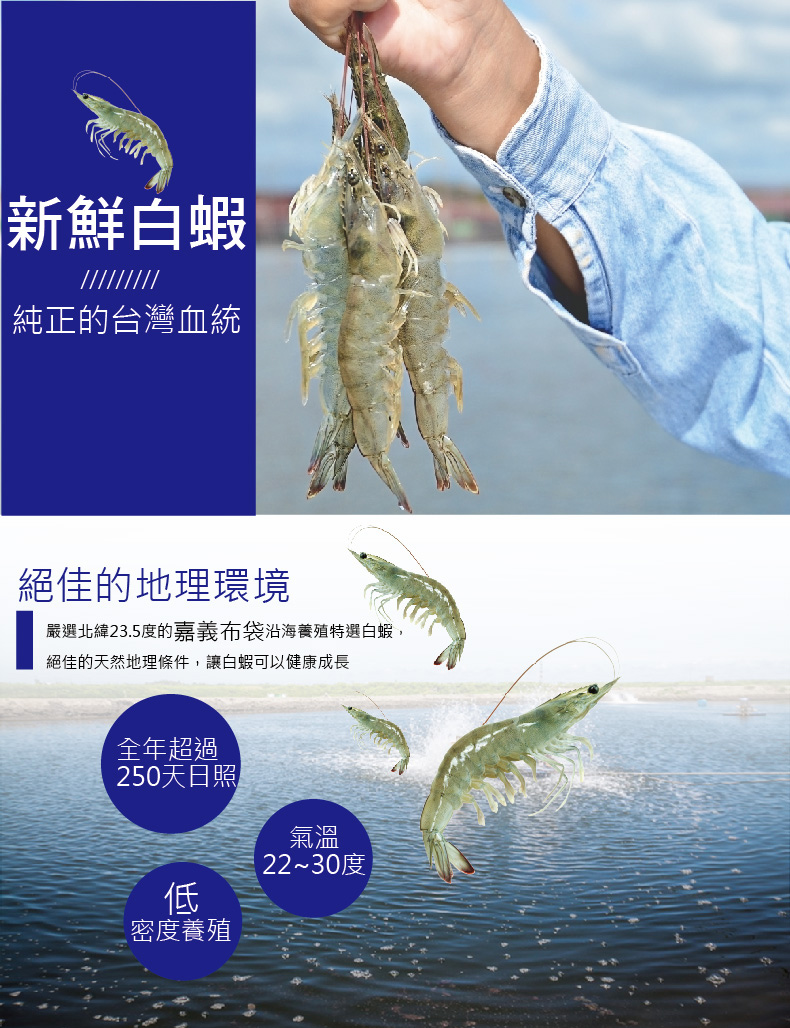 嚴選北緯23.5度的嘉義布袋沿海養殖特選白蝦,