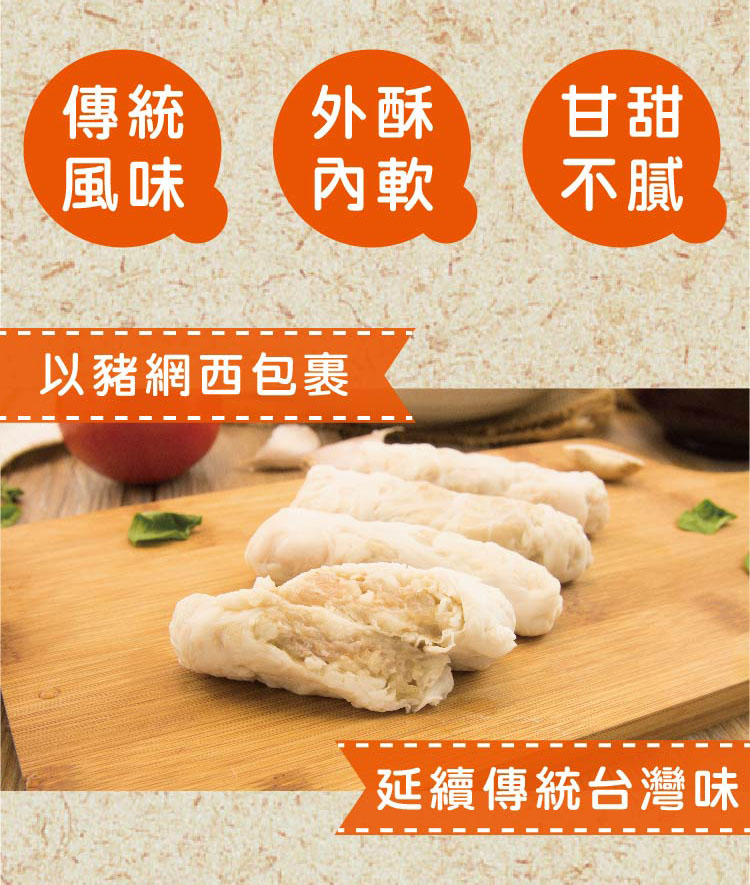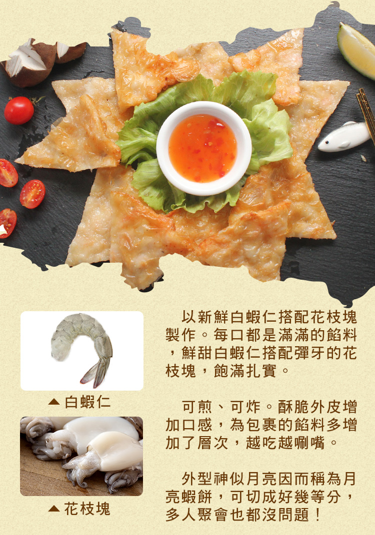 成分:白蝦仁、花枝塊、豬油、新鮮魚漿、鹽巴、砂糖、潤餅皮