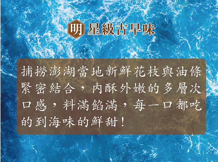 成分:花枝、蝦、油條(麵粉、棕梠油、大豆油、芥花油、鹽、碳酸氫胺、碳酸鎂、碳酸氫鈉、燒鉀明礬、鉀明礬)、豬背脂油(台灣)、樹薯澱粉、糖、L-麩酸鈉、鹽、胡椒、磷酸鹽(多磷酸鈉、焦磷酸鈉、偏磷酸鈉)