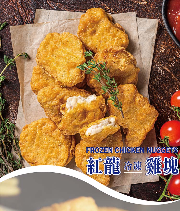 成分: 雞肉、裹粉(玉米粉、麵粉、樹薯澱粉、食鹽、發粉(燒鉀明礬、酒石斯酸氫鉀、碳酸氫鈉、磷酸二氫鈣、玉米澱粉)、胡椒、葡萄糖、辣椒、食用黃色四號)、水、棕梠油、雞皮、牛乳清蛋白、碘鹽、多磷酸鈉