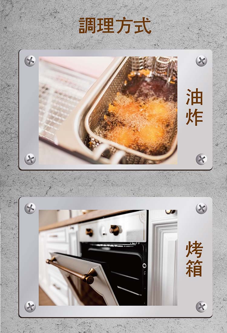 -多種料理方式:氣炸、油炸、烤箱皆可。