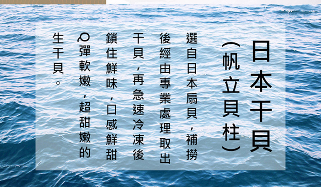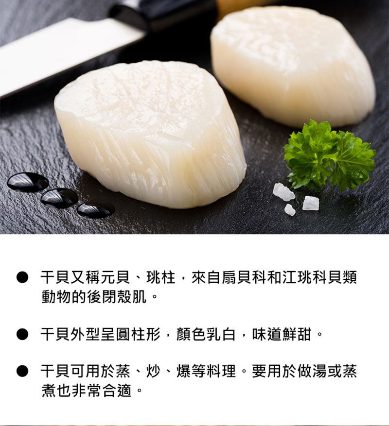-新鮮的帆立貝柱,結實彈牙,口感迷人!