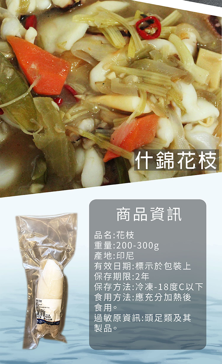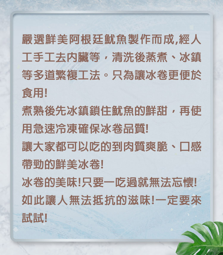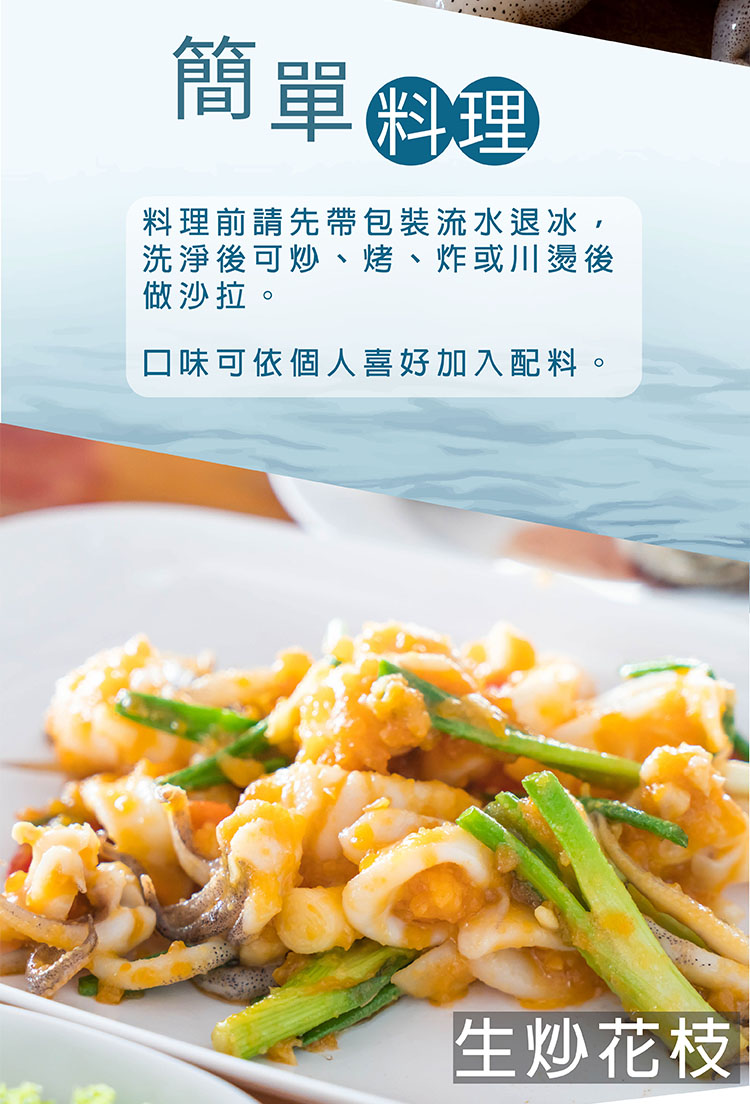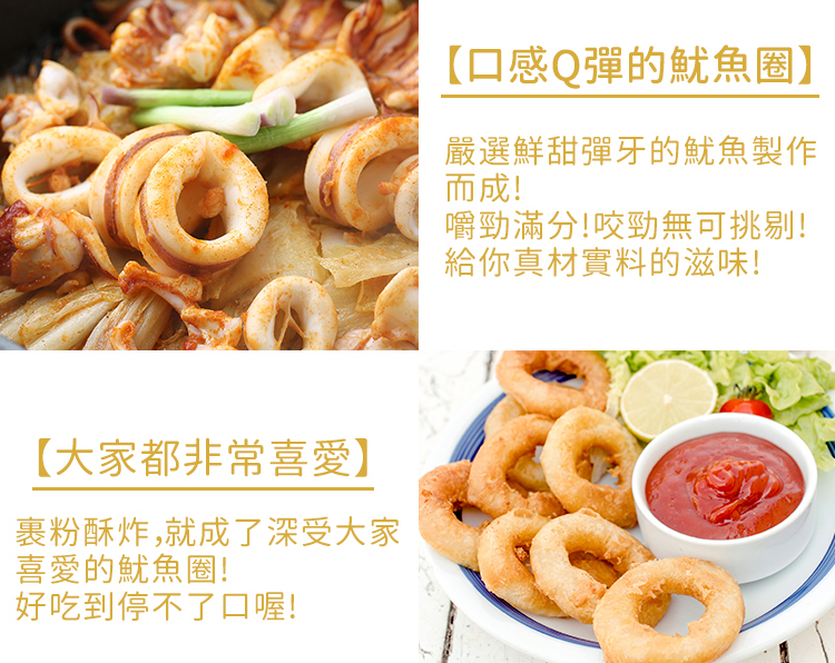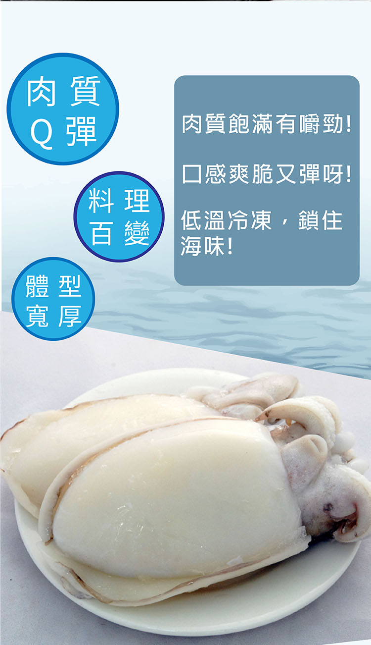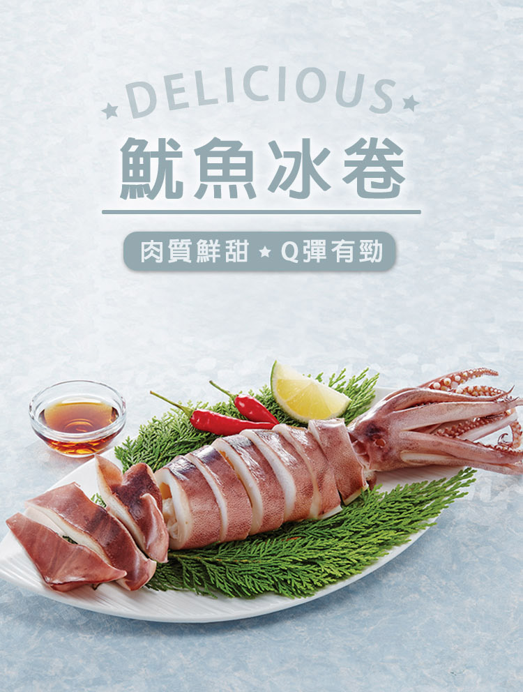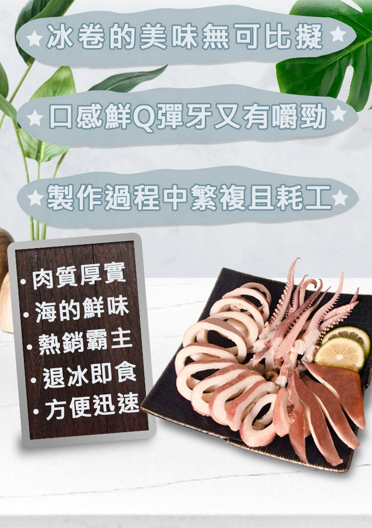 包含熟凍魷魚冰卷、酥炸必備魷魚圈與Q彈二去花枝